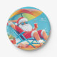 Plato De Papel Santa Claus descansando en una playa tropical con