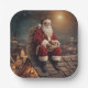 Estos platos de papel de los Navidades muestran a Santa Claus tomando un descanso en la víspera de los Navidades.
