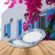 Plato De Papel Santorini de teja azul temática Griega/ Española