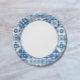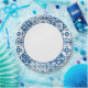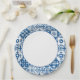 Platos de papel para ducha de novia Dancing Queen de inspiración mediterránea griega y azulejos azules.
