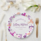 Estos divertidos platos de papel de ducha de novia son perfectos para las mujeres que aman los caballos y la equitación con gráficos de temática ecuestre y acentos florales de bonito en tonos violeta, lavanda, magenta y melocotón. Presentan el gracioso lema "Incurrir en picada" y tu texto personalizado con letras moradas.