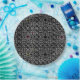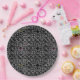 Un intrincado patrón de cruces y círculos grises que se entrelazan sobre un fondo negro con sólo un toque de color.