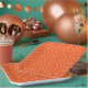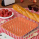 Seamless pattern of small, evenly spaced white polka dots on a bright orange background.