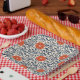 Plato De Papel Seamless floral pattern with vibrant orange flower