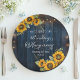 Un elegante diseño de aniversario de bodas con luces de cuerda, girasoles y caligrafía elegante que usted puede personalizar con sus detalles.