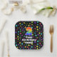 Este divertido y emocionante diseño de placa de papel temático de cumpleaños presenta un gran número "2" con un patrón inspirado en el gradiente del espectro arcoiris, junto con el mensaje "Feliz Segundo Cumpleaños", y un nombre personalizado. El fondo presenta un patrón colorido con muchas estrellas de diferentes tamaños y colores. Las placas de papel con temática de cumpleaños como esta podrían ser usadas en un fiesta celebrando el segundo cumpleaños de alguien. [~Z0000582]