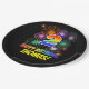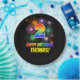 Este alegre, colorido y divertido diseño de placa de papel con temática de cumpleaños presenta un gran número "2" y el mensaje "FELIZ CUMPLEAÑOS", ambos con un colorante inspirado en el gradiente del espectro del arcoiris, junto con un nombre en negrita de personalizable amarillo. También cuenta con un vibrante y excitante estallido de fuegos artificiales de celebración inspirados. El fondo es negro de color. Placas de papel divertidas y personalizadas como esta pueden ser usadas en una celebración que se lleva a cabo para honrar el segundo cumpleaños de alguien. [~Z0000489]