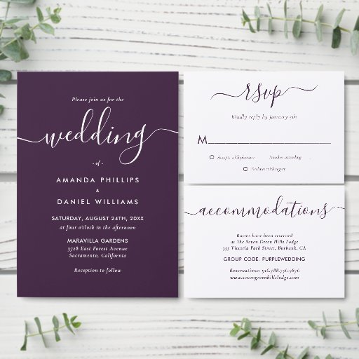 Modern Script Purple Wedding CollectionDiseñado por Daniel Cap