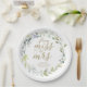 Señorita linda a Sra. Plato de papel de boda de eucalipto verde