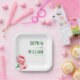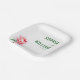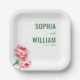 Este elegante plato de boda presenta un diseño minimalista con una distribución limpia, que muestra dos peonías suaves de color rosa a la izquierda y tipografía verde armoniosa para un ambiente sereno y romántico. El texto está organizado en letras mayúsculas en negrita con un toque de cursiva, creando un equilibrio entre formalidad y estilo personal. Perfecto para celebrar su día especial, este diseño combina la ilustración botánica con la estética moderna para mejorar cualquier ambiente de boda.