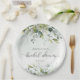 Servilletas elegantes de eucalipto para ducha de novia. Platos de papel. Artículos coincidentes disponibles.