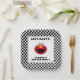 This fun Elmo birthday design features the beloved Sesame Street character front and center with his big smile and bright red face. The design is accented with a bold black-and-white checkerboard border that adds a playful and energetic touch. Custom text lets you highlight your child’s name, and age. Perfect for a Sesame Street–themed celebration, these plates set the tone for a cheerful and exciting party that kids will love.