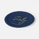 Este plato de papel personalizado añadirá un detalle elegante a la fiesta de cumpleaños número 60 de oro. Este diseño presenta un sencillo guión de pincel de moda "Sixty" con texto personalizado en un fondo azul marino. En mi tienda BaraBomDesign hay disponibles invitaciones para cumplir 60 años y suministros para fiestas.
