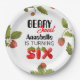 Cute tema de fresa Sexto plato de papel de cumpleaños, edite el texto usted mismo al hacer el pedido.