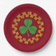 Según la tradición, San Patricio usó el trébol de tres hojas para ilustrar la Trinidad cristiana. Aunque la autenticidad de esta tradición está en duda, el shamrock se ha convertido en un símbolo de Irlanda. Este diseño combina el shamrock verde con un círculo de nudos de estilo celta de color amarillo, ambos de fondo rojo.
