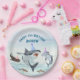 Enjoy birthday cake and ice cream with all your favorite sharks! This paper plates design features a school of festive birthday sharks all wearing fun party hats! Easily edit with your birthday party information.