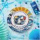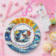 Boy's birthday party in a nautical or maritime theme paper plates. Blue, yellow, red shark pop art. Add child's name in the personalize area.