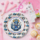 Boy's birthday party in a nautical or maritime theme paper plates. Blue, red and yellow sharks, whales and anchors. Add child's name in the personalize area.