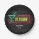 Plato De Papel Signo de cumpleaños 21 de Neon marquee en ladrillo