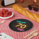 Plato De Papel Signo de Neon número 70 en pared de ladrillo