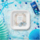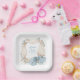 Serve your guests with style and charm using these Silly Goose Blue Floral Paper Plates. Perfect for a boy’s baby shower or a gender-neutral celebration, this high-end design features a voluminous, cream-colored ribbon wreath accented with delicate blue wildflowers and soft peach blossoms. A large, beautiful blue bow with a subtle star pattern serves as the elegant focal point at the bottom of the design.