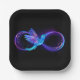 Plato De Papel Símbolo de infinito neón con colibrí brillante