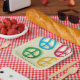 Cuatro símbolos de paz de diferentes colores. Este diseño parece realmente efectivo en estas placas de papel