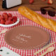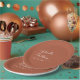 Un diseño clásico que presenta los nombres de la feliz pareja en una elegante escritura encima de la fecha especial en un fondo de terracota. Diseñado por Thisisnotme©