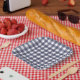 Simple, minimal navy gingham pattern paper plate.