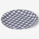 Simple, minimal navy gingham pattern paper plate.