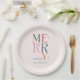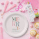 Plato De Papel Simplemente colorido Feliz Navidad Rosa
