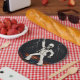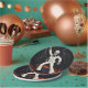 Placas de papel de la fiesta de Halloween con esqueleto de baile en un traje de discoteca blanco retro, electrificadas por tornillos de rayo y una divertida pista de baile naranja. Perfecto para un evento espeluznante, este exclusivo diseño de bash fija el tono para una noche de disfraces, música y movimientos inolvidables.