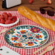 Sirva una seria fiesta con Skull & Petalware, el plato redondo que tiene más encanto que una calavera en una corona de flores. Con un hermoso y detallado cráneo de azúcar rodeado por una ráfaga de florals vibrantes—piensen en marigolas, rosas y remolinos de hojas—este diseño es un tributo al Día de los Muertos que es igual de reverente y ridículamente festivo. El crujiente fondo blanco y la profunda llanta azul hacen que cada ficha, tamale o pan de Muerte se vuelquen como confetti en una tormenta de viento. Ya sea que estés organizando un auténtico bash en el altar o que simplemente quieras que tu juego de tentempiés grite "icono cultural", este plato te lo entrega. Sin texto, sin alboroto, sólo magia pura de calavera en cada picada.