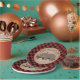 Placas de papel de ducha para bebés con el ilustracion de un cachorro de oso para bebés en posición de dormir en una rama de árbol con fondo rojizo y negro de leñador.
