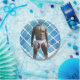 SlipperyJoe hombre muscular seis paquetes abs malla ropa interior blanca malla azul mosaicos en forma de diamante moderno fondo de superficie digital abstracción artística orgullo gay regalos LGBTQIA carne y píxeles colisionan irreal fusión de sueños únicos diseño audaz