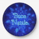Un enjambre de copos de nieve fractales azules. El texto italiano que dice "Buon Natale" aparece en azul brillante y blanco.