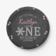 Plato De Papel Snowflake Winter Chalkboard Primer cumpleaños