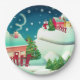 Estos platos de papel son para el tiempo de los Navidades, tienen un muñeco de nieve y una escena de invierno retratada en ellos.