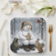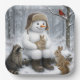 Plato De Papel Snowman In Winter Woods With Animal Friends
