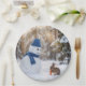 Plato De Papel Snowman Scowling at a Rabbit