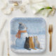 Plato De Papel Snowmen and Cats In a Snowy Field