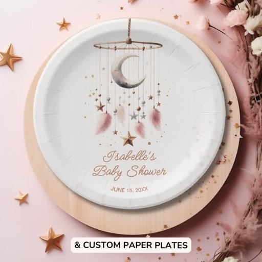 Plato De Papel Sobre la luna Boho Celestial Chica Baby Shower