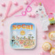 Una escena luminosa y colorida ofrece una vista espectacular del sur de California - personajes adorables disfrutan del cálido sol de California mostrando Santa Bárbara, Los Ángeles, San Diego, Riverside, Palm Springs, Condado de Naranja y El Centro con los parques Anza Borrego y Joshua Tree, así como las ciudades fronterizas de Tijuana, Tecate y Mexicali. Esta encantadora escena lo tiene todo - un surfista cuelga diez, una ballena asesina salta del agua, animales del zoo saludan a los turistas, una pareja de playa muscular flex para impresionar mientras un T-Rex ruge un desafío y un tanque se mueve en posición y mucho más...