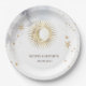 Sol y luna de oro celestial y estrellas en un fondo acuarela.