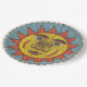 Este es un divertido plato de papel con un ilustracion vintage de un sol con un sol sonriente.