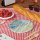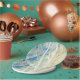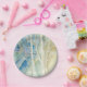 Diseño de solsticio de Annie Mason. Placas de papel para cualquier ocasión. Esta elección de color cálido/fresco en un patrón de árbol abstracto deslumbra a sus invitados.