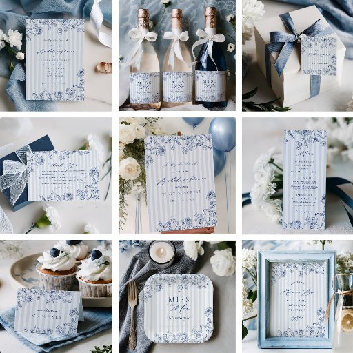 Decorate the table of your "something blue" bridal shower with our custom paper plates featuring classic chambray stripes and navy floral line art.