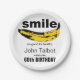 Arte gráfico: Banana orientada a formar una sonrisa + texto pequeño entre corchetes: (es bueno para la salud). Perfecto para cualquiera que siga sonriendo año tras año. Diseño en placa de papel con textos para la fiesta de cumpleaños número 60 a personalizar. Puede cambiar fácilmente el texto (fuente, color, tamaño y posición) haciendo clic en el botón personalizar. Invitación de cumpleaños coincidente, cumpleaños Guardar la fecha, libros de invitados de cumpleaños (portada dura y cuaderno de espiral), servilleta de papel de cumpleaños, caja de favores y más...