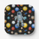 A Colorful Space Party Paper Plate For Kids Or Adults Designed With Rockets, Planets And Astronaut