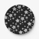 Plato De Papel Sparkly Silver Stars Navidades patrón negro